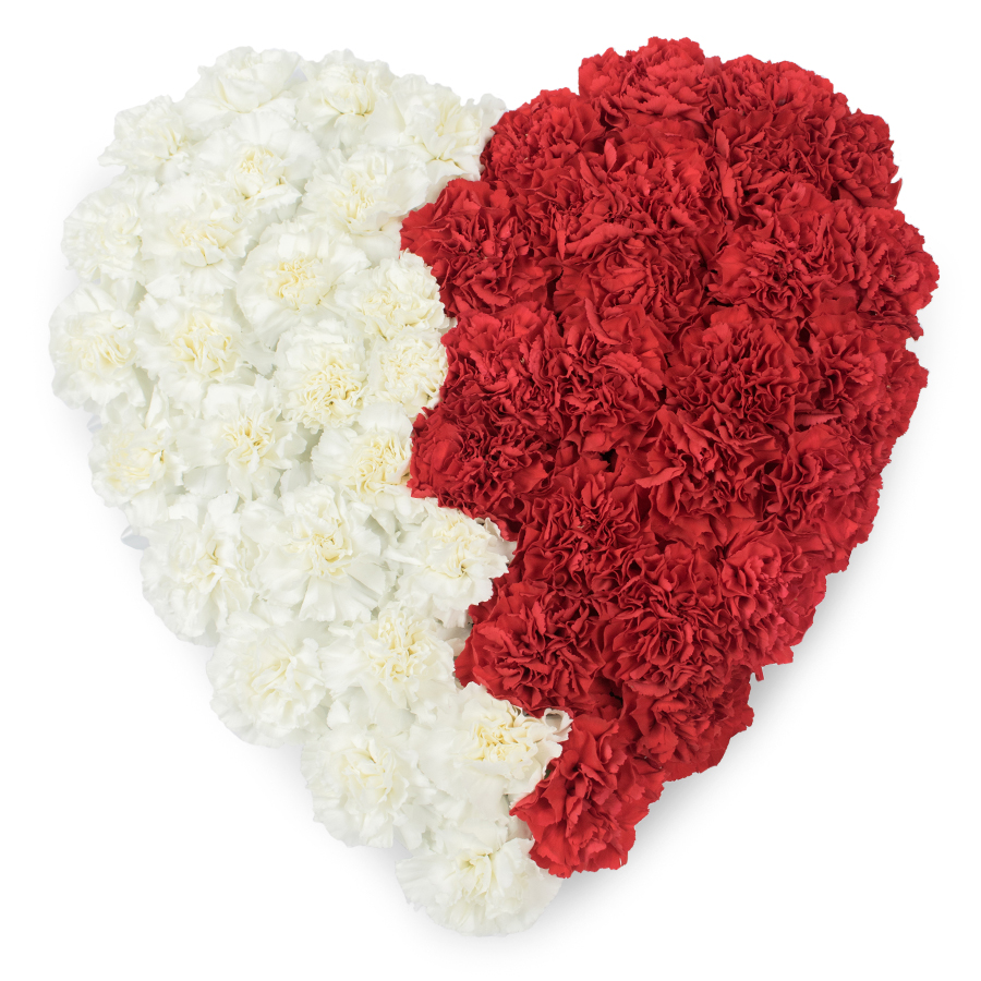 Discover the timeless beauty of our Heart of Carnations arrangement, meticulously crafted by Handy Flowers. This stunning bouquet features a harmonious blend of pristine white and passionate red carnations, symbolizing purity and love.